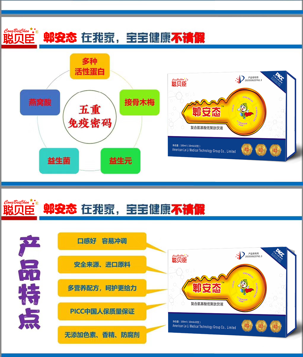 美國樂力醫藥科技集團股份有限公司美國樂力醫藥是一家專業致力于嬰幼兒保健食品、營養食品、母嬰產品等開發、生產、銷售、服務為一條龍的新型醫藥科技型企業 聰貝臣️免疫1號...