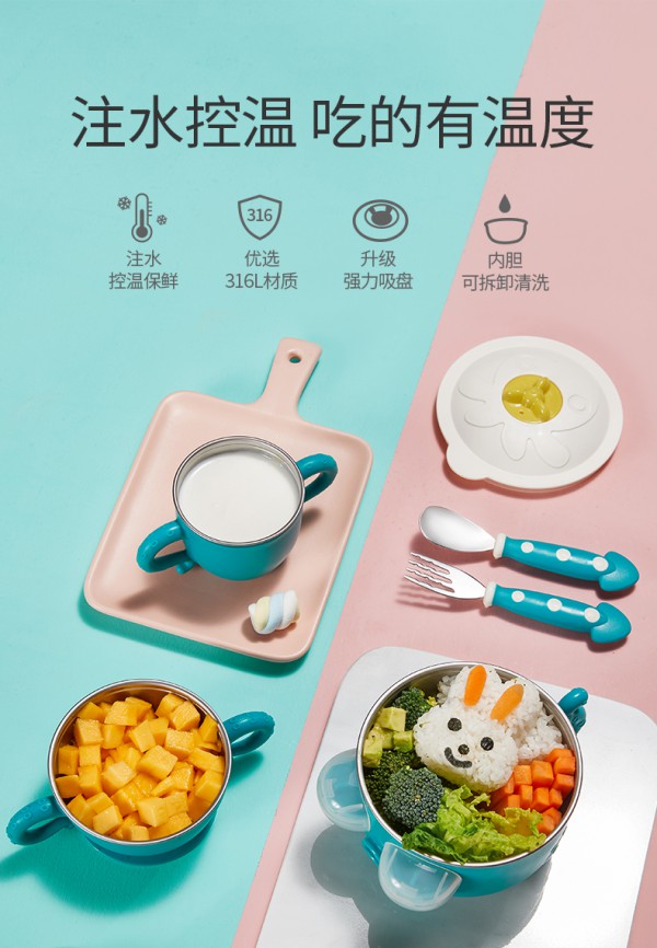 食物過冷寶寶會拉肚子,食物過熱會燙傷寶寶,反復加熱食物變質對寶寶身體不好......可優比兒童餐具注水保溫碗合理控溫寶寶吃飯不用等,可以根據需要注入冷水降溫或者熱水保溫,寶寶可以一...