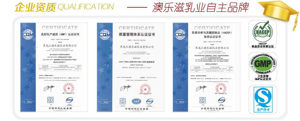 黑龍江澳樂滋乳業有限公司成立于1988年,公司科技實力雄厚,與國際知名原料供應商有著良好的合作關系。2010年在原廠基礎上投資8000萬元擴建廠房,并重新購進美國勞力公司整套生產設備,成為具有世界一流生產水平的先進乳品生產廠。
