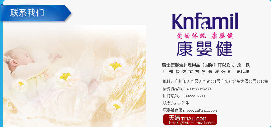 6、豐富的物料支持:康嬰健精美的形象專柜配合產品開樣裝,建立品牌終端形象;試用裝、宣傳手冊、手提袋、折頁、 易拉寶、燈箱布等豐富實用的贈品、助銷品,促進產品終端銷售。