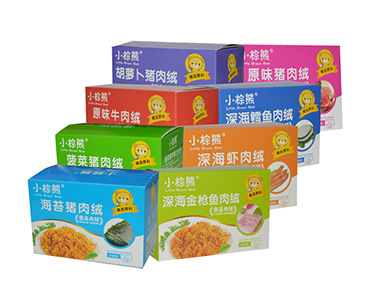 主要產品有:小小饅頭蛋酥系列、棒棒餅干磨牙棒餅干系列、磨牙棒系列、數字字母骨頭餅干系列、蝴蝶面顆粒面小面片直面系列、肉絨肉松系列、水果酸奶小溶豆系列、特色蛋卷系列等共六十多個品種300多個規格的產品。
