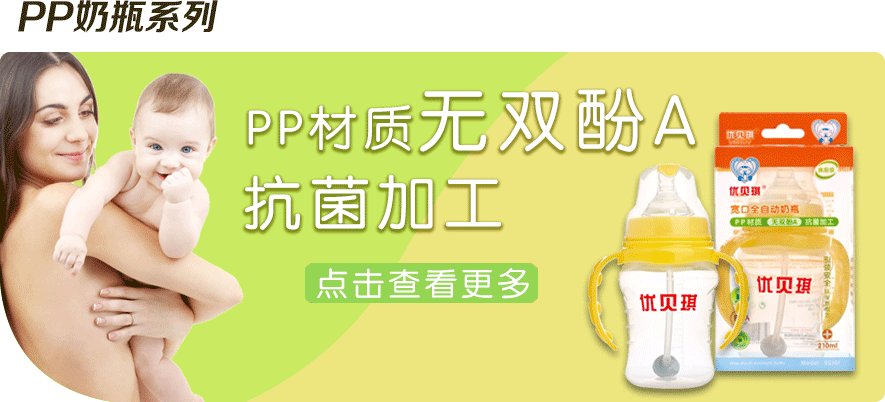 “優貝琪”是公司旗下嬰兒系列產品的主營品牌。主打產品“優貝琪”奶瓶采用日本進口食品級、硅膠料,PP材料、奶嘴則采用進口食品級硅膠原料。“優貝琪系列產符合國家食品QS認證檢驗標準,瓶身采用進口食品級無毒、無味、材料聚碳酸脂(PP)注吹而成,符合美國FDA、歐洲EN71及英國BS標準,以“質優價廉”暢銷全國各地及遠銷中東等地區。以母嬰需求為依據,以關愛寶寶重視環保為根本,力求將自然、溫馨融合在產品中。為客戶提供高品質的產品是我們追求的目標,如蒙惠顧,我們將滿足各界對高品質的要求。