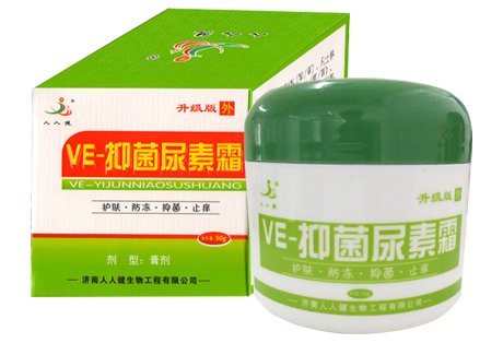 人人健VE-抑菌尿素霜營養成分解析: 1.醫用甘油:甘油是幾乎所有保濕產品都含有的成分,小分子,能從空氣中吸收潮氣,將水分留在角質層; 2.洗必泰:具有相當強的廣譜抑菌、殺菌作用,是一種較好的殺菌消毒藥; 3.天然蘆薈:蘆薈中含的多糖和多種維生素對人體皮膚有良好的營養、滋潤、增白作用; 4.橄欖油:有效保持皮膚彈性和潤澤,有護膚護發和防治手足皴裂等功效; 5.維他命:維他命E防止細胞氧化,維他命B有預防及治療神經炎和腳氣病的功效。