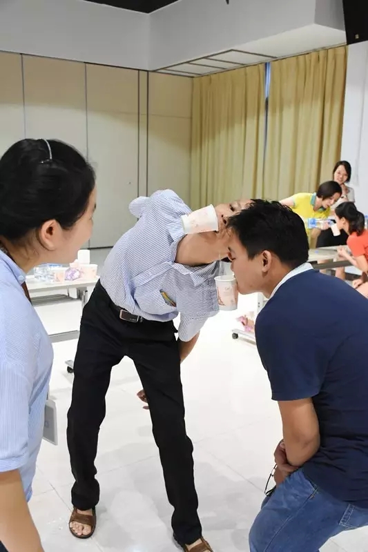 蛋糕吃完就進入期待已久的游戲環節了! 此次活動游戲共有4個,分組進行PK。每組人數相當,實力均衡。 ![]()