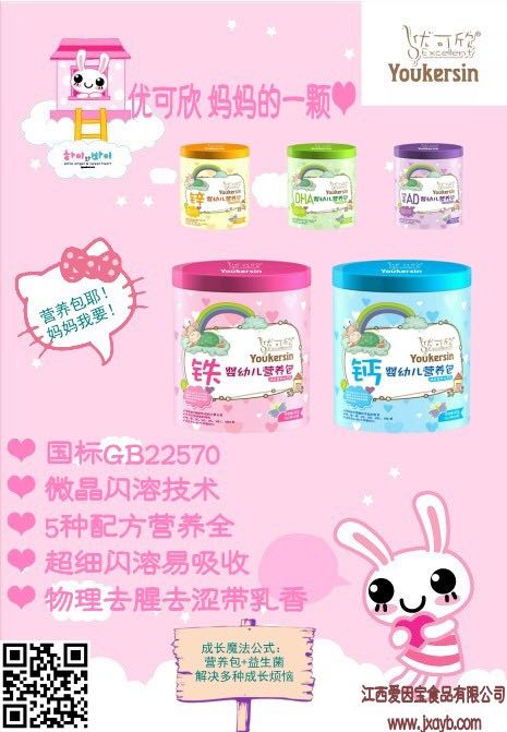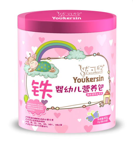 優可欣鐵營養包:富含鐵元素,預防嬰幼兒缺鐵性貧血等癥狀。