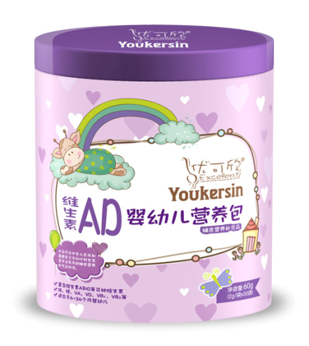 優可欣維生素AD營養包:富含維生素A和維生素D,有效預防嬰幼兒佝僂病和夜盲癥,促進血鈣和磷的恒定,促進骨骼和牙齒的生長發育。