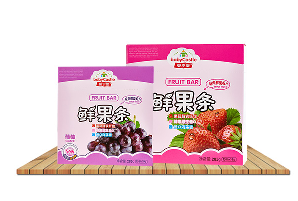 水果條:100%新鮮水果加工而成,特別添加海藻糖,無添加人工色素,人工甜味劑,人工香精,有10種口味。 手指餅:臺灣風味,營養豐富,有4種口味。