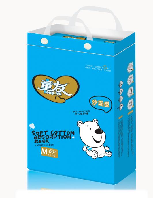 “童友”紙尿褲是廣州愛茵母嬰用品有限公司生產的一款回頭率達95.73%的紙尿褲。敢在每包包裝袋右上方打上“可以免費試用五片包退包換”的售后服務,源于材料選用雙熱風材料(熱打孔面層、熱風底膜),并采用雙進口核心吸水因子,穩定性達99%。 “童友”紙尿褲的理念是讓客戶“用最少的錢買最好品質的紙尿褲”,因為公司擁有自己的工廠生產線和專業研發團隊。選擇“童友”相伴一生,給你的人生、事業帶來幸福快樂!