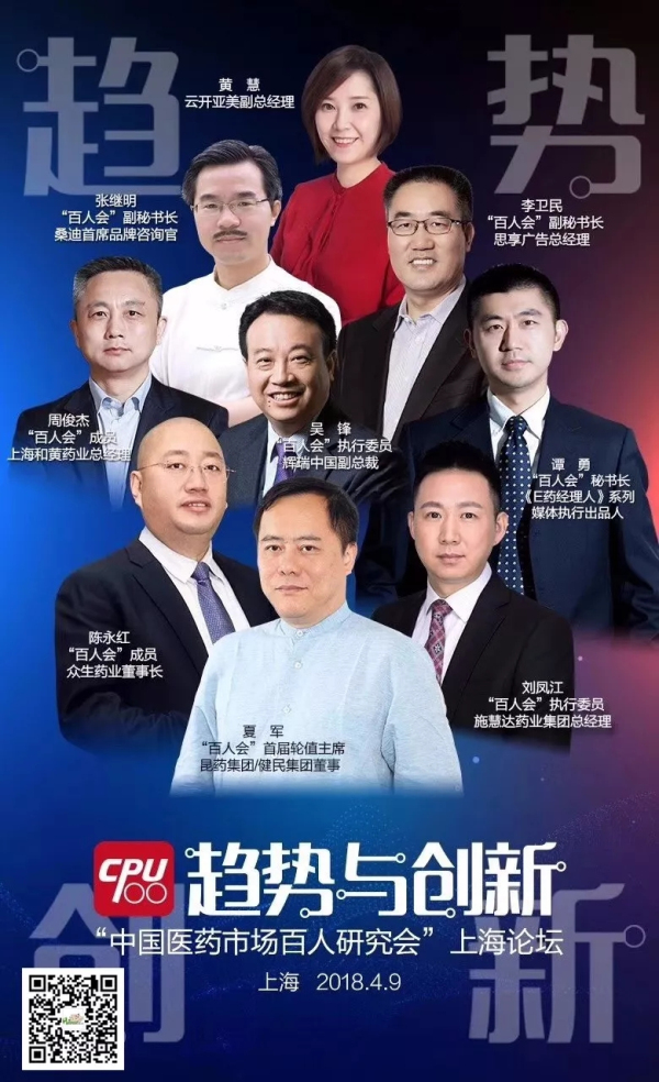 順勢而為!“中國醫藥市場百人研究會”(簡稱“百人會”,英文縮寫“CPU100”)于2017年夏天成立,匯聚國內醫藥營銷頂級操盤手,以“實踐洞察醫藥市場規律,研判醫藥行業趨勢和創新,引領醫藥前沿技術的落地”為宗旨,探索投資、研發、市場的緊密融合,以期引領醫藥營銷乘風破浪,推動醫藥行業健康快速發展。