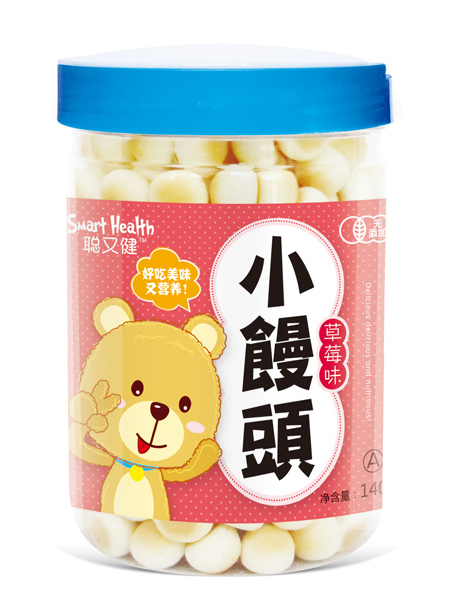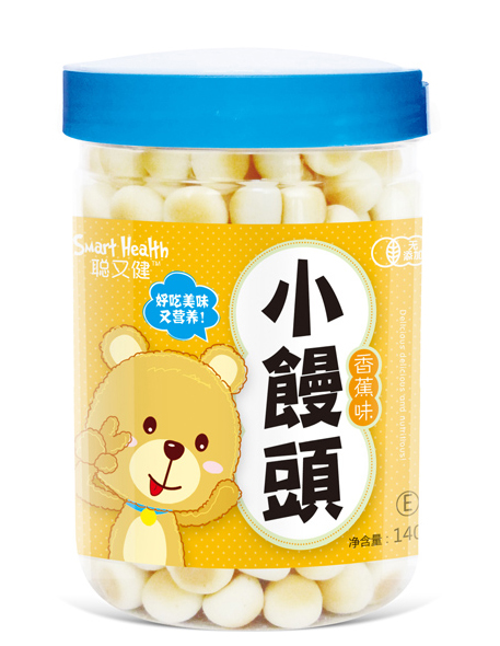 聰又健小饅頭選用優質馬鈴薯淀粉、奶粉等原料,營養搭配均衡合理,是美味可口的營養小點心。聰又健小饅頭外表小巧可愛,容易吸引寶寶的注意。