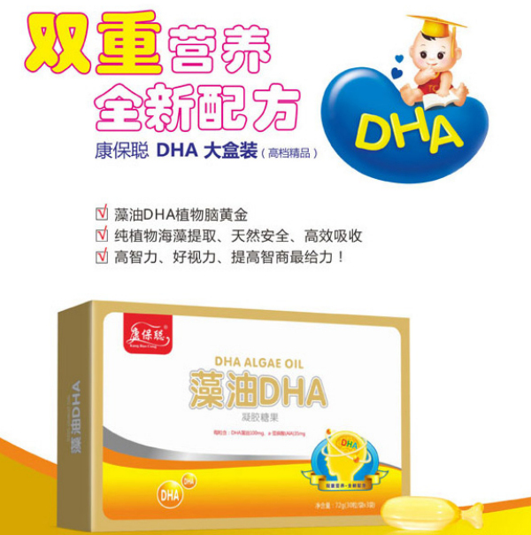 康保聰海藻DHA營養粉產品作用: 1、提高記憶力,注意力,有益身心健康; 2、有益于寶寶大腦功能健康,提高學習能力; 3、預防寶寶近視,弱視。