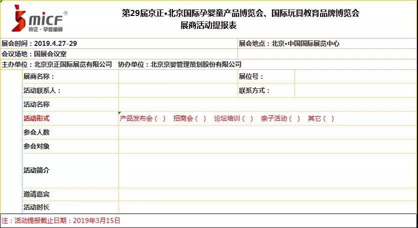 《活動提報表》已上傳至京正國際官網(wǎng) 展商下載中心 https://www.jingzheng.com/?expo_down/id/1.html,如有需要,請自行下載。