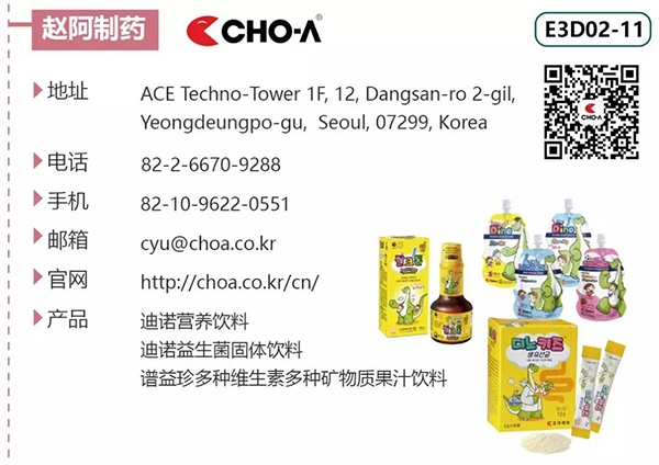 除了食品類的參展品牌外,另一家韓國知名的制藥品牌——趙阿制藥也將作為重點(diǎn)參展品牌亮相本屆展會(huì)。趙阿制藥成立于1988年, 1995年獲KGMP認(rèn)證,并在1999年于韓國KOSDAQ上市,以“助人遠(yuǎn)離疾病, 守護(hù)人類健康和幸福”為企業(yè)經(jīng)營理念。趙阿制藥擁有200多種產(chǎn)品,包括醫(yī)藥品、保健食品和飲料,其中60多種產(chǎn)品已出口到全球28個(gè)國家。