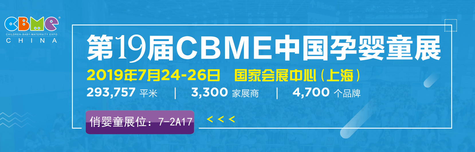 2019年7月24日-26日,第19屆CBME中國孕嬰童展將在上海國家會展中心隆重舉行,此次展會將匯聚來自全球的4700多個品牌、3300多個優質展商以及10萬專業觀眾,是一場盛大的母嬰行業交流盛會。俏嬰童受邀參展,展位號7-2A17,屆時俏嬰童將攜媽咪寶寶系列、嬰親特護系列的優質產品驚艷亮相,誠邀廣大經銷商前來咨詢交流。