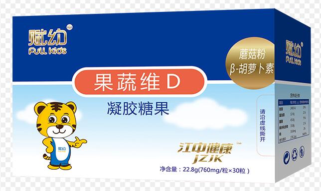 賦幼果蔬維D凝膠糖果:維生素D含量豐富,安全性高;可咀嚼食用且口感良好,是富有營養且健康有益的美味糖果。
