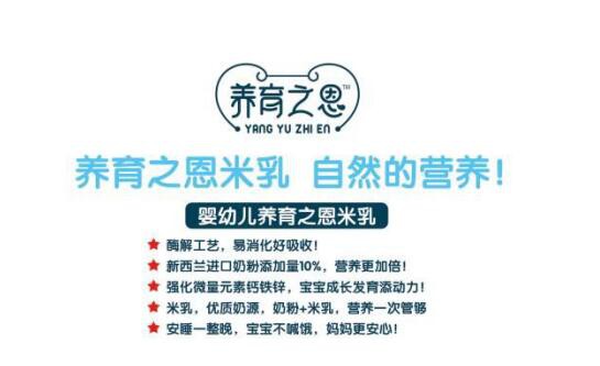 養育之恩水蘇糖米乳強化微量元素鈣鐵鋅,更特別添加了水蘇糖成分,配比科學,營養均衡,滿足寶寶生長發育所需的各種營養素,助力寶寶成長更加倍。