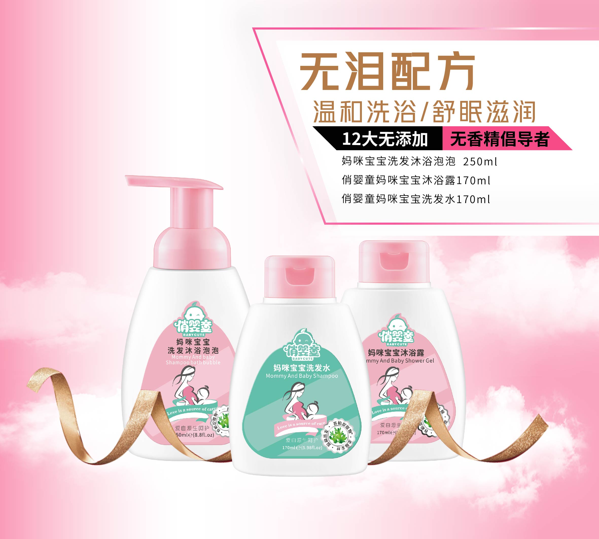俏嬰童品牌除了俏嬰童媽咪寶寶洗發沐浴泡泡外,還有倍潤霜、親膚乳、嬰親霜等眾多款單品,均采用食品級原料,低敏配方,品質嚴格遵循國家標準。無論春夏與秋冬,總有一款是你的適合你。