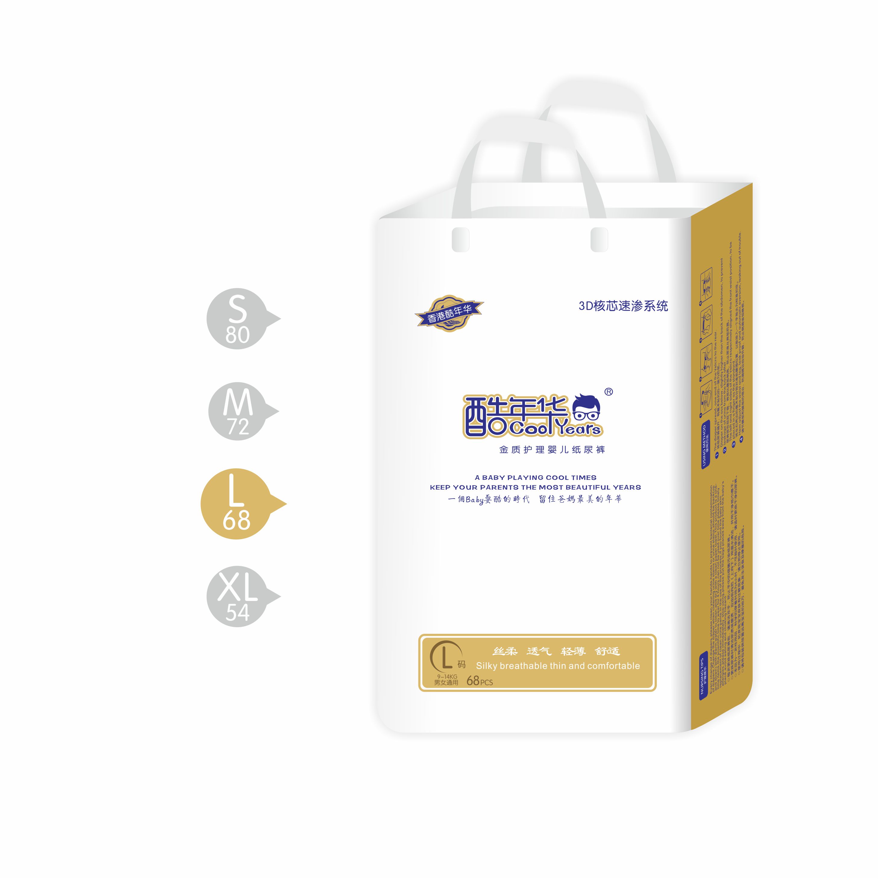 酷年華金質護理紙尿褲,選用進口材質,絲質棉柔,柔軟親膚;超薄芯體,芯體厚度僅0.1㎝,3D核芯速滲系統,雖纖巧超薄,卻毫不影響吸水效果,超大吸量,瞬間干爽不回滲;吸水后芯體仍保持平整,不起坨、不斷層,簡直完爆普通芯體!