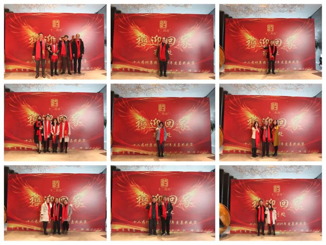金豬辭舊歲,瑞鼠賀新年,2020年1月3日,十二藥坊集團(tuán)在位于鄭州港區(qū)的豪華五星級(jí)酒店---園博園建國(guó)飯店舉行了盛大的晚會(huì)。 中午12點(diǎn),來自全國(guó)各地的代理商家人們身著印有集團(tuán)logo,代表幸福平安的紅圍巾在“禧迎回家”的簽到墻前簽名留言,每個(gè)人臉上都洋溢著幸福的笑臉。