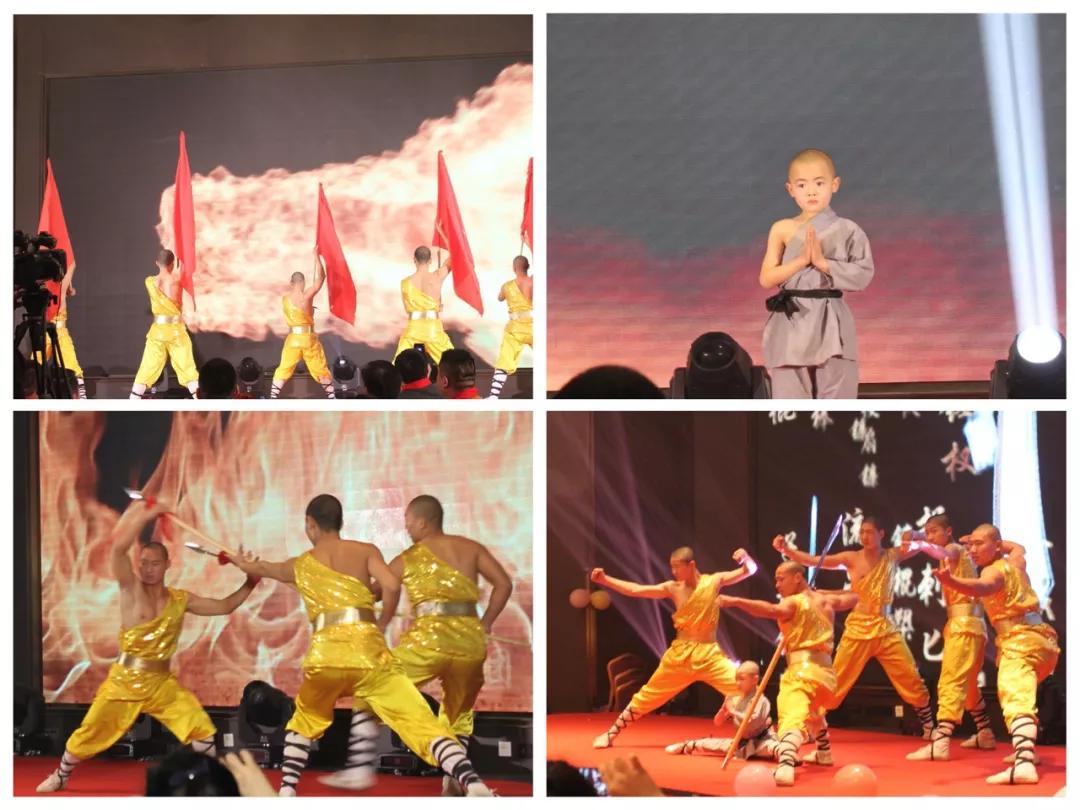 充滿喜慶熱鬧的晚宴大廳 下午15:30晚宴在氣勢(shì)恢宏的少林武僧表演中拉開帷幕,六位從少林寺請(qǐng)來的武僧,用大氣磅礴,氣勢(shì)恢宏的表演,征服了現(xiàn)場(chǎng)的所有觀眾,迎來了無數(shù)次掌聲、歡呼聲。