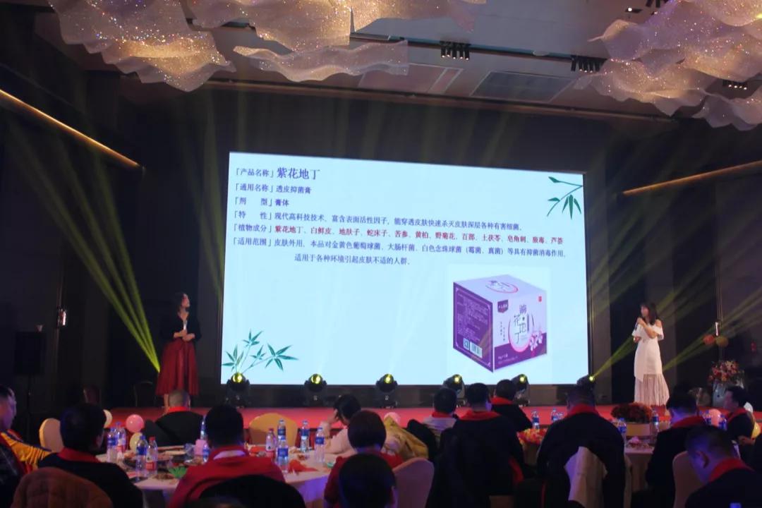姜總演唱《喜歡你》 隨后,學(xué)術(shù)部代表集團(tuán)發(fā)布了2020年爆款新品“紫花地丁透皮抑菌膏”,兩位老師用生動(dòng)故事講解了紫花地丁的功效,對(duì)皮膚臨床常見病進(jìn)行了專業(yè)的講解。
