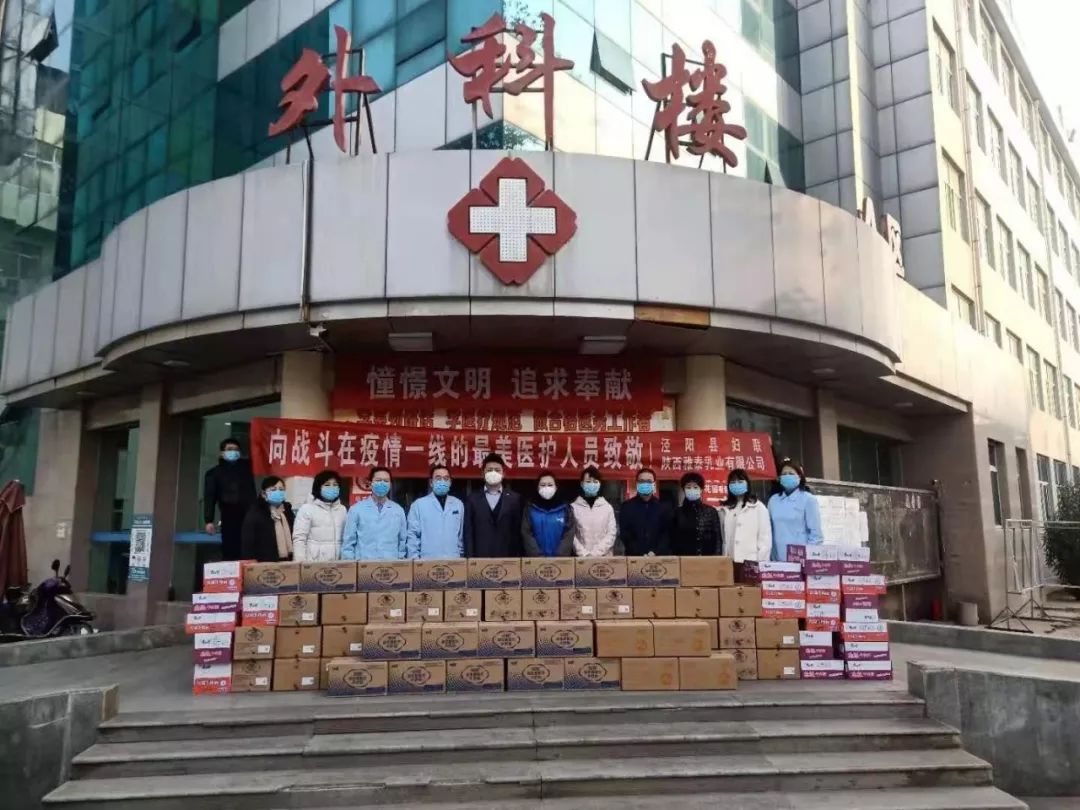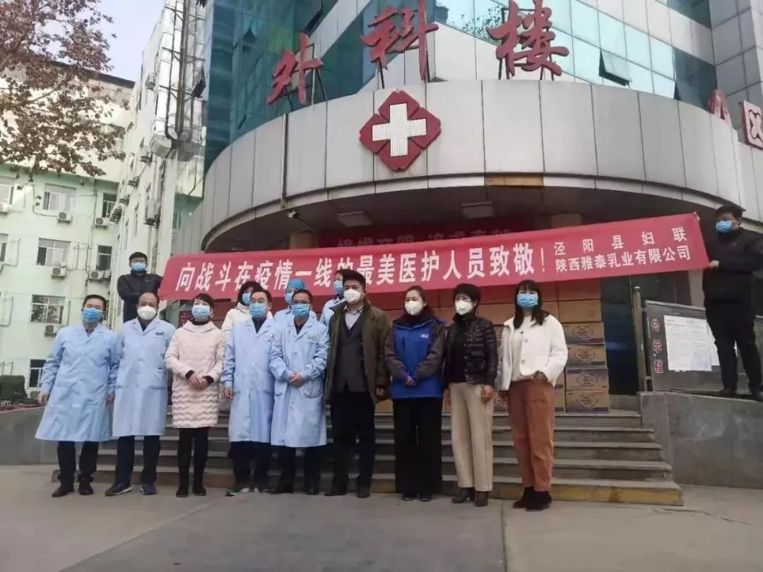2020年1月31日,陜西雅泰乳業(yè)有限公司攜手涇陽(yáng)縣婦聯(lián)舉行“致敬一線醫(yī)護(hù)人員”愛(ài)心捐贈(zèng)活動(dòng),通過(guò)實(shí)際行動(dòng)致敬堅(jiān)守一線的醫(yī)護(hù)工作者,向他們表達(dá)親切的慰問(wèn)和崇高的敬意。