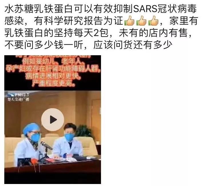 借著疫情過度宣傳產品,得不償失! 近日,不少地方在抗擊新型冠狀病毒感染的肺炎疫情期間,出現了商家利用疫情在微信平臺中對其產品做各類夸張宣傳的現象,有的門店已經被當地市場監督管理局依法查處。 比如1月22日河北香河縣某孕嬰店員田某在朋友圈發布“新型冠狀病毒已進入香河,并有2例確診,各位要給孩子準備好提升免疫力的益生菌和乳鐵蛋白,不要讓一次錯過演變成遺憾”的信息。經查,違法嫌疑人田某是為推銷其店內產品在微信朋友圈發布該虛假信息,因涉嫌虛構事實擾亂公共秩序被處以行政拘留的處罰; 1月26日,安岳縣某母嬰用品店經營某牌乳鐵蛋白產品,通過微信號在朋友圈中發布了“乳鐵蛋白可以有效抑制SARS冠狀病毒感染,有科學研究報告為證”及“武漢的病毒真的很厲害,家里有乳鐵蛋白的加量吃”的廣告宣傳信息。目前已經被該縣市場監管局立案調查; 1月27日,清流縣一連鎖母嬰店經營者在朋友圈發布“乳鐵蛋白可以有效抑制SARS冠狀病毒感染,有科學研究報告為證”的信息,并借醫生等廣告代言人做推薦、證明“乳鐵蛋白”可以有效預防病毒。因當事人無法提供乳鐵蛋白可以有效預防病毒的報告,執法人員認為此行為涉嫌發布虛假廣告,已啟動立案調查; 1月28日,荊門市湖北宜草堂大藥房某門店櫥窗玻璃上貼有“關注新冠狀病毒 等疫苗不如早預防, 醫用口罩、板藍根顆粒、蛋白粉、VC片,宜草堂大藥房有售”等字樣,涉嫌利用疫情對商品作引人誤解的宣傳,荊門市市場監管局對此立案查處。 ...... 除了這些已報道的案例,筆者還在朋友圈看到一些極易誤導消費者的宣傳文案: