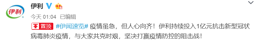 伊利持續投入1億元抗擊新型冠狀病毒肺炎疫情 1月26日,伊利持續投入1億元,用于新型冠狀病毒肺炎的防控治療,這也是伊利繼捐贈2萬箱牛奶、捐贈1000萬元資金用于支持武漢火神山醫院建設和將物資送達新型冠狀病毒肺炎救治定點醫院——武漢市新洲區人民醫院后的第4次行動。
