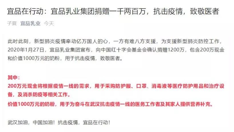 宜品乳業捐贈200萬現金和價值1000萬元奶粉用于抗擊疫情
