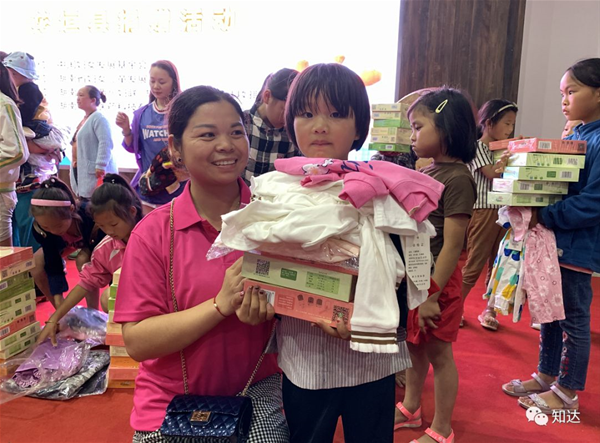母嬰門店愛心義工向貧困學生捐助愛心物資,希望這些孩子能健康成長