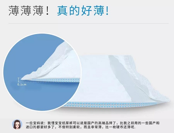 薄 我懂寶寶自品牌創(chuàng)立之初,創(chuàng)始團(tuán)隊(duì)為了追求過(guò)硬的產(chǎn)品質(zhì)量,在公司實(shí)驗(yàn)室內(nèi)呆了無(wú)數(shù)個(gè)日夜,進(jìn)行了上萬(wàn)次的產(chǎn)品配比和對(duì)比實(shí)驗(yàn),最終自主研發(fā)了我懂寶寶第九代“超薄全芯體”,我懂寶寶紙尿褲整體的厚度僅為0.1cm,產(chǎn)品不僅選用了日本進(jìn)口吸水SAP高分子(三大雅和住友),更將高分子含量提升了30%,使產(chǎn)品吸水量更多,鎖水性更好。我懂寶寶的薄,是可以看得見(jiàn)的薄。