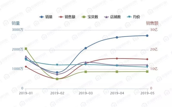 在童鞋市場不斷擴大,集中度又不斷提高的情況下,掌握現在市場的整體動向至關重要。根據母嬰研究院的線上數據顯示,我們總結了以下童鞋市場的特點: 銷量上升,店鋪數下降 根據母嬰研究院數據顯示:除去受春節影響,銷量降低的的2月份之外,1月份的銷量也明顯低于其他月份,從2月份之后的走勢總體上呈現一個上升的趨勢。但是其中店鋪數卻相對于前幾個月份有所下降,所以在天貓+淘寶平臺有明顯的店鋪關閉,在數據上也可以看到明顯的變化。銷量和店鋪數成反比關系,說明越來越多的用戶和流量集中到了少數商家的手中。