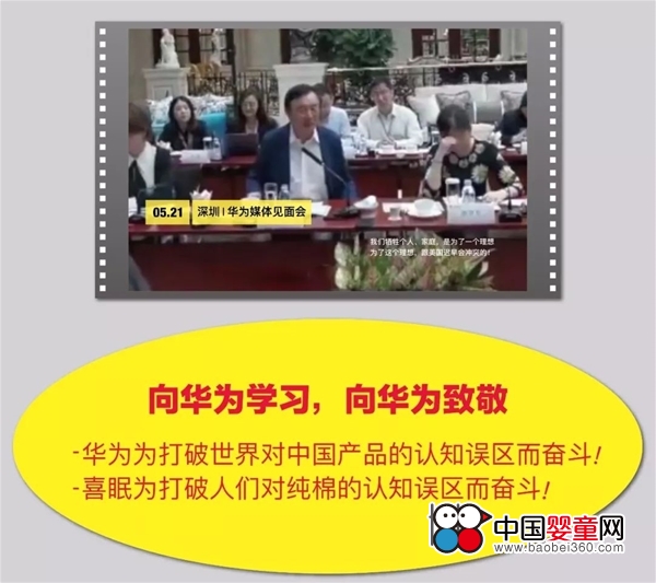近來(lái),許多人通過(guò)“八佰伴事件”“不打折說(shuō)明會(huì)”等一系列新聞報(bào)道知道了喜眠。再加上“第5屆喜眠寶寶關(guān)愛(ài)周”活動(dòng)的影響力越來(lái)越大,知道喜眠兒童排汗睡衣的人也越來(lái)越多。但小藍(lán)象同時(shí)也收到了很多質(zhì)疑的聲音,因?yàn)槿匀挥泻芏嗳苏J(rèn)為純棉是最好的選擇。 正好這段時(shí)間,“華為事件”受到了全世界的關(guān)注,然而任正非在深圳總部接受媒體采訪時(shí)說(shuō):“小藍(lán)象犧牲了個(gè)人、家庭,是為了一個(gè)理想,為了這個(gè)理想,跟美國(guó)遲早會(huì)沖突的。” 面對(duì)眾人的質(zhì)疑,喜眠創(chuàng)始人認(rèn)為,為了中國(guó)2億孩子的健康這一理想,喜眠同純棉的沖突已不可避免!喜眠應(yīng)該向華為學(xué)習(xí),也應(yīng)該勇敢地站出來(lái)為自己的理想發(fā)聲,所以喜眠決定在6月1日兒童節(jié)這天召開(kāi)“打破純棉認(rèn)知誤區(qū)”發(fā)布會(huì)。