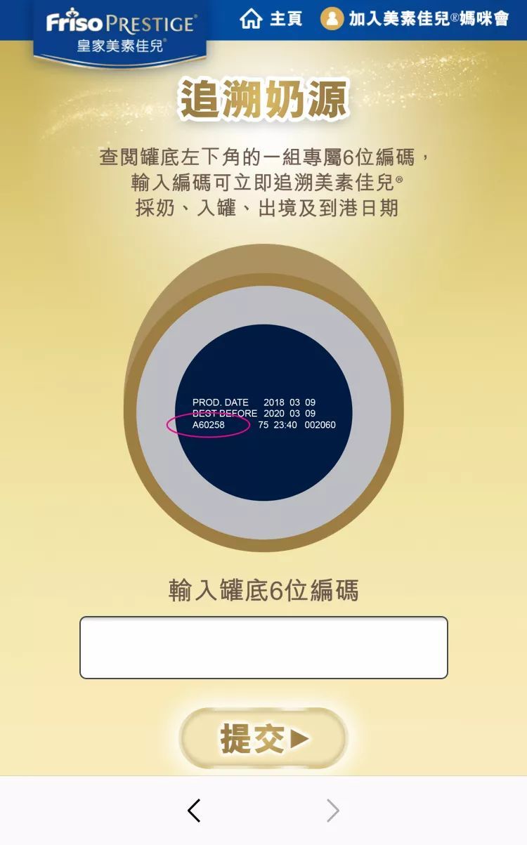 此刻我才知道原來玄機還在罐底,需要輸入位于罐底左下角的一組專屬6位編碼,寶媽們一定要看清是紅圈內的6位編碼,不要輸錯哦。