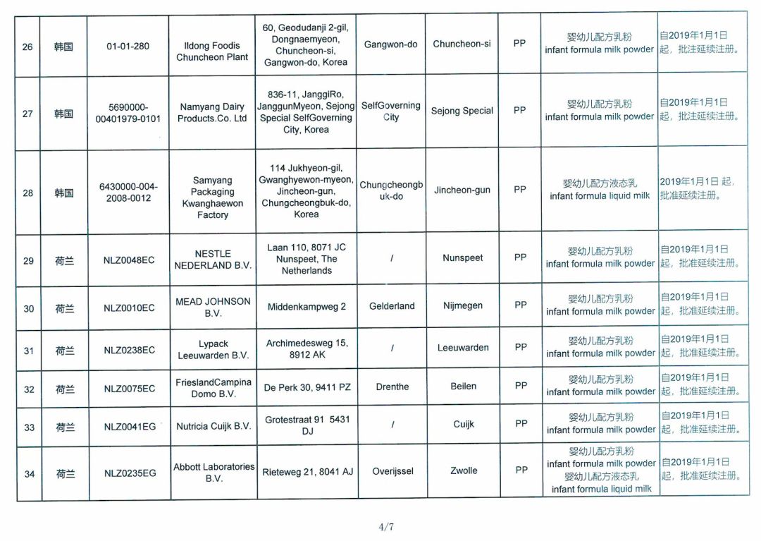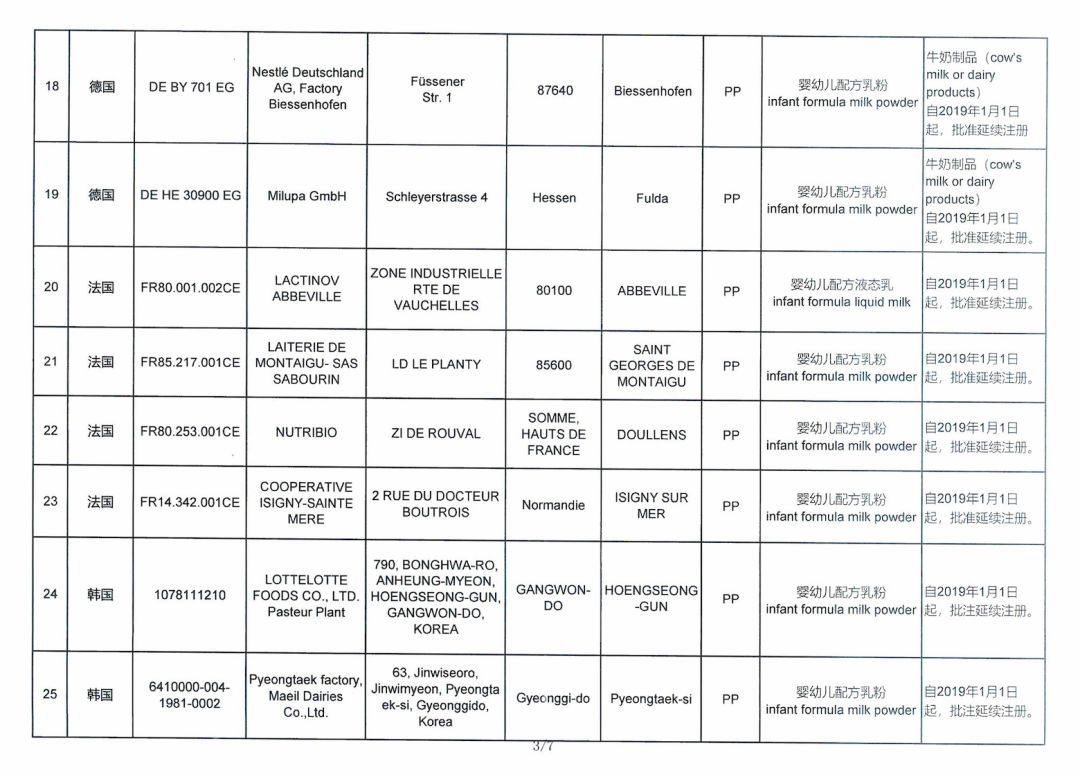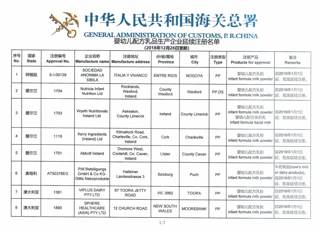 2019年開工第一天,奶粉行業就傳來重大消息。小食代今天了解到,注冊有效期截至2018年底的64家境外嬰配生產企業當中,55家已獲批延續注冊,9家已被注銷注冊。 也就是說,“喜提”延續注冊的55家企業可以繼續生產并對華出口奶粉了,而被注銷注冊的9家企業自2019年1月1日起生產的奶粉將不得對華出口。 我們來看下具體名單。 海關總署官網2018年12月29日發布的《關于公布準予延續注冊的進口嬰幼兒配方乳品境外生產企業名單的公告》顯示,根據《中華人民共和國食品安全法》、《進口食品境外生產企業注冊管理規定》(原質檢總局令第145號),海關總署對注冊有效期截至2018年底的64家進口嬰幼兒配方乳品境外生產企業開展了延續注冊工作。