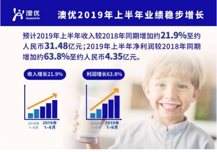2019年8月16日至17日,由中童傳媒 & 山東省孕嬰童用品商會主辦的動銷中國·山東站暨山東母嬰零售高峰論壇,將于山東濟南舉行!7月最后一天,澳優公布了上半年正式盈利預告。預計2019年上半年,澳優實現收入約人民幣31.48億元,同比增幅約為21.9%;2019年上半年凈利潤同比增幅約63.8%。其中,預計2019年上半年羊奶粉佳貝艾特同比增幅為45.3%,約13.19億元;自由品牌配方牛奶粉同比去年銷售增幅為20.7%約14.10億元。