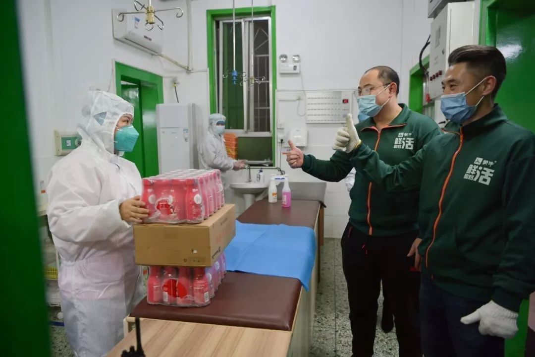 于是,宋春慶就和送奶隊(duì)伍把酸奶分別裝進(jìn)四輛小貨車(chē)。隨著工作量加大,送奶隊(duì)伍也從五個(gè)人變成了十三個(gè)人,并將600件酸奶送到了武漢市第一人民醫(yī)院。 隨著后來(lái)蒙牛捐贈(zèng)力度不斷加大,武漢工廠運(yùn)輸一線的員工及合作伙伴也開(kāi)始全天候運(yùn)轉(zhuǎn)起來(lái),力爭(zhēng)將物資盡快送到一線。1月27日,特侖蘇牛奶送達(dá)火神山醫(yī)院建設(shè)工地現(xiàn)場(chǎng),1月28日蒙牛乳制品送達(dá)武漢15家醫(yī)院。 和蒙牛一同支持抗擊疫情的還有熱心的經(jīng)銷(xiāo)商。