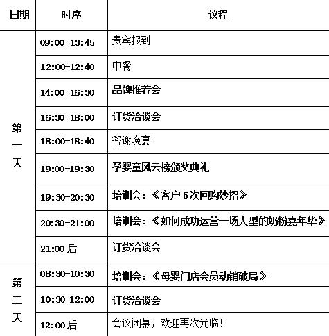 活動報名及福利 報名熱線: 何璐:17805808091(山東) 宋超:15858117694(河南) 姚杏全:15267494563(安徽) 報名要求: 僅限母嬰連鎖門店、代理商、老板、管理層等參加 報名成功即可獲得福利: 1:主辦方提供精美禮品一份 2:豪華酒店免費住宿和餐飲名額 3:現場參與價值5000元現金抽獎 4:價值12888元講師課程免費聽 |