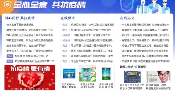 有需要的品牌,可以登錄會(huì)員,在會(huì)員后臺(tái)聯(lián)系方式頁面底部,找到上傳指定聯(lián)系人微信二維碼。實(shí)現(xiàn)品牌與渠道、需求方精準(zhǔn)對(duì)接與溝通。 疫情期間,物資的快速有效運(yùn)轉(zhuǎn),十分重要,此項(xiàng)功能的上線將有效助推物資供給與需求方快速達(dá)成合作。中國嬰童網(wǎng)始終與廣大母嬰人站在一起,將不斷優(yōu)化線上其它功能,為母嬰企業(yè)和品牌方各項(xiàng)事務(wù)的順利完成提供更加便捷的服務(wù)和支持。一起推動(dòng)母嬰行業(yè)在線辦公,共度時(shí)艱。 |
