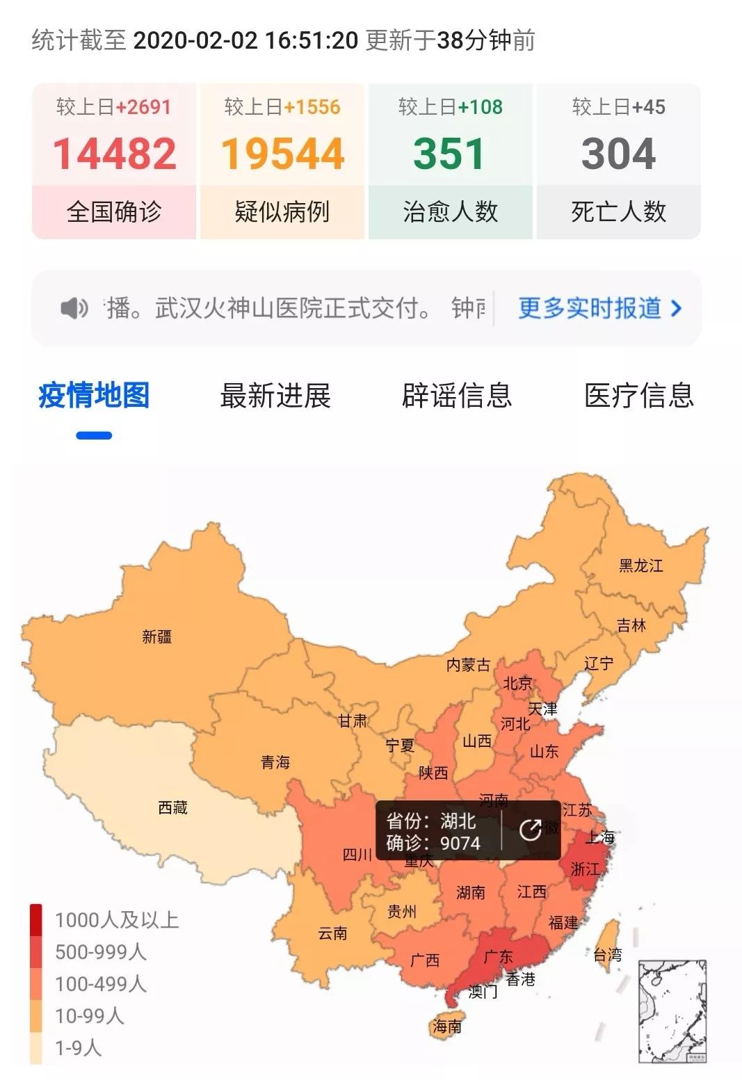 新型肺炎疫情牽動億萬國人的心,截止2月1日24時,國家已確診新冠肺炎病例14380例,現有重癥病例2110例,累計死亡病例304例,累計治愈出院328例。現有疑似病例19544例。目前累計追蹤到密切接觸者163844人,當日解除醫學觀察8044人,現有137594人正在接受醫學觀察。