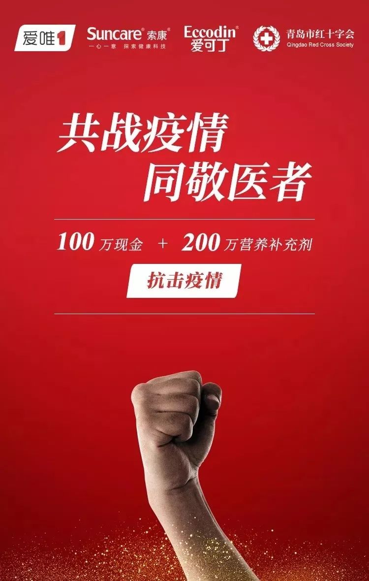 1月30日,索康、愛可丁等攜手愛唯一啟動捐贈計劃,向青島紅十字會捐贈現金100萬元(用于購買防護服、口罩、消毒液等醫療防護用品等)以及價值200萬元的營養補充劑。 貝智康