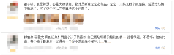 其實,隔尿墊對于寶媽的作用還是挺大的,所以學會合理使用隔尿墊是有一定重要性的。不過,寶媽們也要盡量選擇品質較好、透氣性較強的隔尿墊,避免寶寶紅屁股。 尿布桶 對于有新生寶寶的家庭而言,寶寶的紙尿褲不僅能帶來驚人的消耗量,也隨時散發著使用后的真“香”警告。尤其秋冬季節,家中通風條件較為有限,雖然用過的紙尿褲被放在垃圾桶中,但它一言難盡的酸爽氣味卻能蔓延至家中各個角落……這時,尿布桶就派上用場了。 據了解,尿布桶是專為解決丟棄寶寶紙尿褲問題而打造的產品。它通過腳踏板或者輕拉甚至智能感應等巧妙的設計,讓寶媽們能實現單手操作,可以一手抱著寶寶,一手扔紙尿褲。同時,它一般也擁有隔味裝置設計,能起到充分密封氣味的效果,有消費者表示它堪稱有娃家庭的標配。