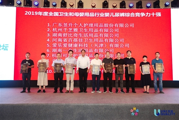 2019年度全國衛生和母嬰用品行業嬰兒尿褲綜合競爭力十強企業