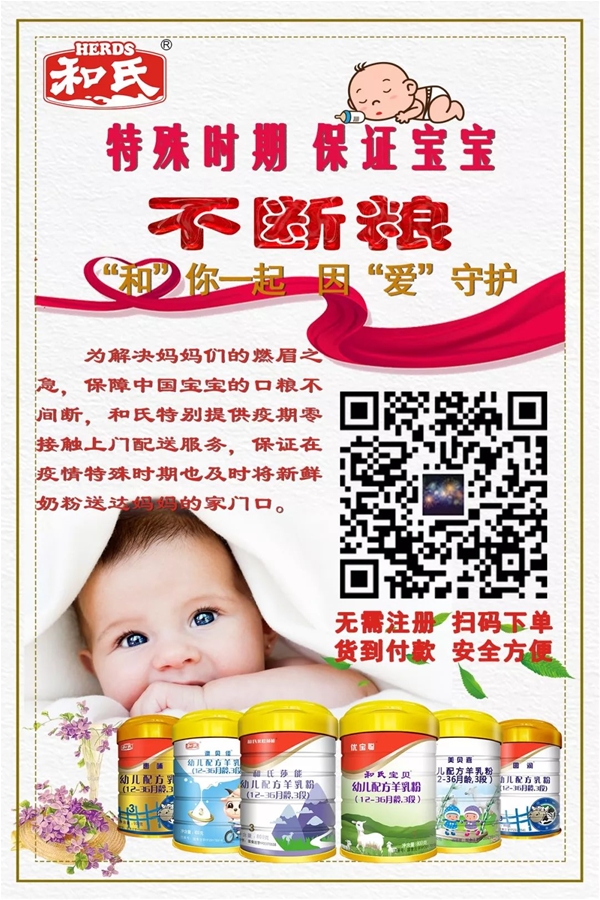 和氏不僅在生產時采取了一系列緊急預案措施,對所有進出廠區人員、車輛進行消毒和監測,對廠區進行消毒排查,對員工進行排查摸底,設置疫情查詢點,確保每一罐和氏奶粉的安全,還為緩解合作伙伴目前的困局,啟動了超過5000萬補貼的一級預案措施。據了解,其中包括并不限于:疫情期間,為全國所有合作經銷客戶、終端門店、消費者提供物流、運營、送貨上門等增值服務。同時,為了消費者更加方便地補給奶粉,和氏還全面啟動“掃碼下單,直接配送”服務。消費者可根據自己的需求,通過掃碼填寫所需奶粉品類、數量及段位,和氏將在第一時間,零接觸送貨上門,保證寶寶口糧安全。