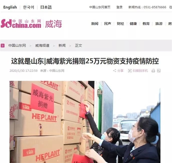 | 抗擊疫情,威海紫光在行動(dòng)!武漢加油!中國(guó)加油! |