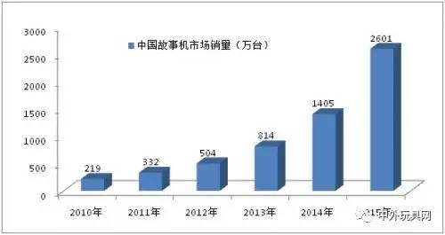 目前國內(nèi)兒童故事機產(chǎn)品企業(yè)規(guī)模普遍較小,多數(shù)企業(yè)只停留在產(chǎn)品制造加工階段,研發(fā)能力薄弱,整體實力與歐美企業(yè)有很大差距,研發(fā)能力較弱的企業(yè)一般向第三方購買故事。 二、故事機市場需求格局 “故事機”依然是0-6歲玩具市場的一個“強”剛需,是一個孩子喜歡,家長開心的產(chǎn)品。2015年中國故事機銷量為2601萬臺。 2010-2015年中國故事機市場銷量情況