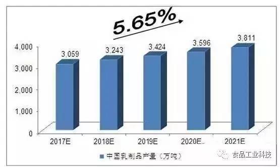 綜合以上因素,據(jù)2017年中國乳制品行業(yè)現(xiàn)狀及發(fā)展趨勢分析預(yù)計(jì),2017年我國乳制品產(chǎn)量將達(dá)到3,059萬噸,未來五年(2017-2021)年均復(fù)合增長率約為5.65%,2021年產(chǎn)量將達(dá)到3,811萬噸。 文章來源:國家乳業(yè)工程技術(shù)研究中心,部分圖片來源于網(wǎng)絡(luò)
