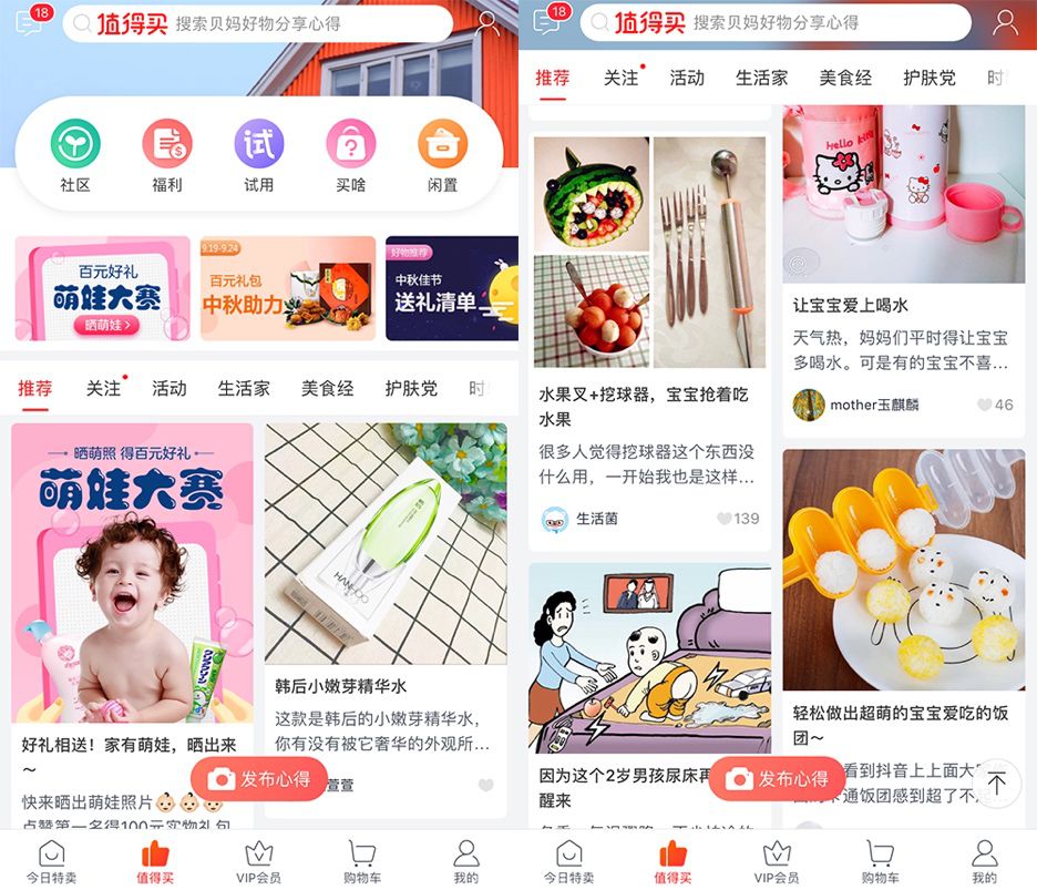 消費升級,讓購物充滿樂趣 “消費升級“這個概念,大概是2018年整個電商行業的熱門話題。貝貝網擁有著大量的家庭消費群體,如何讓他們享受趣味購物,兼顧經濟與品質,是貝貝集團創始人兼CEO張良倫一直在堅持做的事情。他認為,消費升級,很大部分是服務的創新性升級。目前貝貝網主要在三個層面進行著優化,分別體現在以下三個層面:以內容導購為代表的場景式購物體驗;以互動社群為代表的場景式購物體驗;以大數據為代表的場景式購物體驗。 內容導購,互動社群,讓購物不再單調 隨時隨地得分享生活,記錄美好生活。抖音的大火,源于人們對生活的熱愛,愿意分享身邊的有趣體驗。購物也不例外,如果說內容為導購的小紅書大概是各類時尚,美妝博主的聚集地,那貝貝網應該是寶媽寶爸們的聚集地,他們分享著自己的購物心得,創意料理,交流著育兒經驗,人人都是生活全能手。