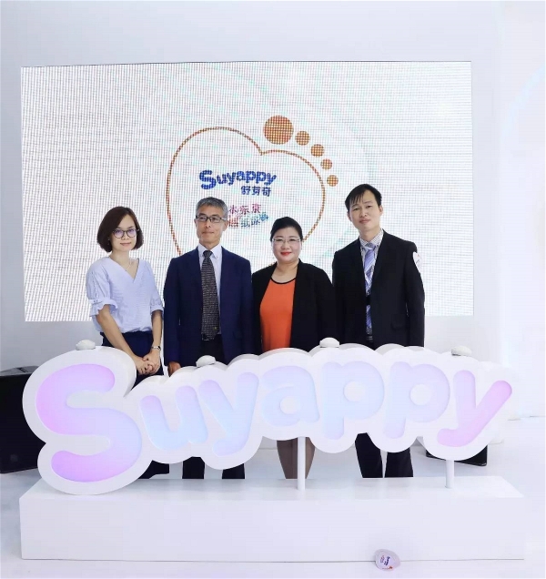 強強聯合舒芽奇開啟的空氣紙尿褲新時代 展會現場,太陽紙業副董事長李娜女士、生活用紙研發部總監Alex先生、日本Crecia株式會社社長Fujinaga先生以及公司戰略合作伙伴垂直類母嬰網站寶寶樹代表侯婷女士,共同啟動了舒芽奇品牌LOGO,寓意這款日本東京空氣紙尿褲正式進入中國市場,到場的來賓,行業伙伴和媒體人員紛紛表示祝賀。李娜女士和Fujinaga先生也在啟動儀式結束后接受了各大媒體的采訪。