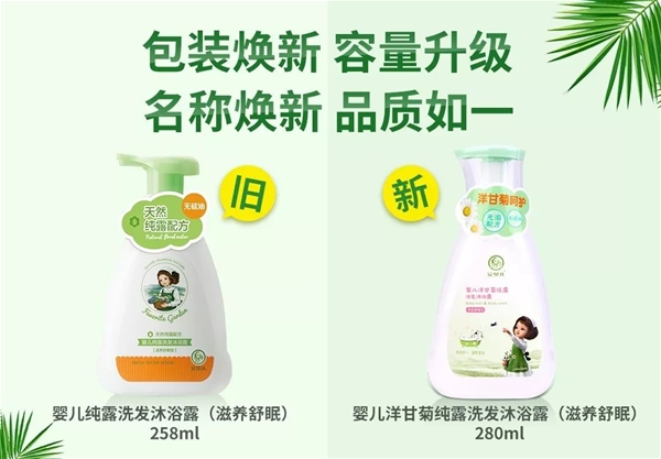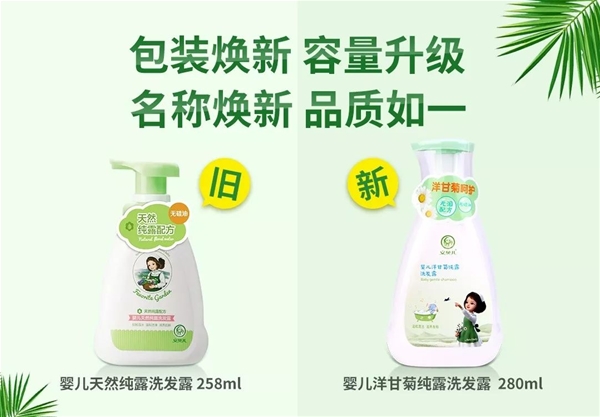 為進一步提升安貝兒品牌形象,滿足消費者需求,優化產品結構,安貝兒部分系列產品包裝將陸續更換升級。包裝升級,品質如一。歷經數月,設計團隊靈感碰撞,不斷優化,新包裝華麗登場。跟之前的包裝相比,我們有了以下變化: 1.安貝兒仙子形象將由2D平面形象升級為3D立體形象。 2.包裝更加時尚美觀,符合年輕人審美。 3.部分產品將進行產品配方和功效的升級。 4.部分產品將更換條碼以及凈含量和瓶型。 5.天然純露概念將更換為更加具體的洋甘菊純露概念。 6.部分產品將調整零售價。 安貝兒將始終秉持“安心之愛”的品牌理念, 堅持“更安全、更有效”的產品品質, 為寶寶和媽媽們提供天然安全高效的洗護產品, 由此造成的不便敬請諒解。 升級效果 更美麗的安貝兒仙子形象